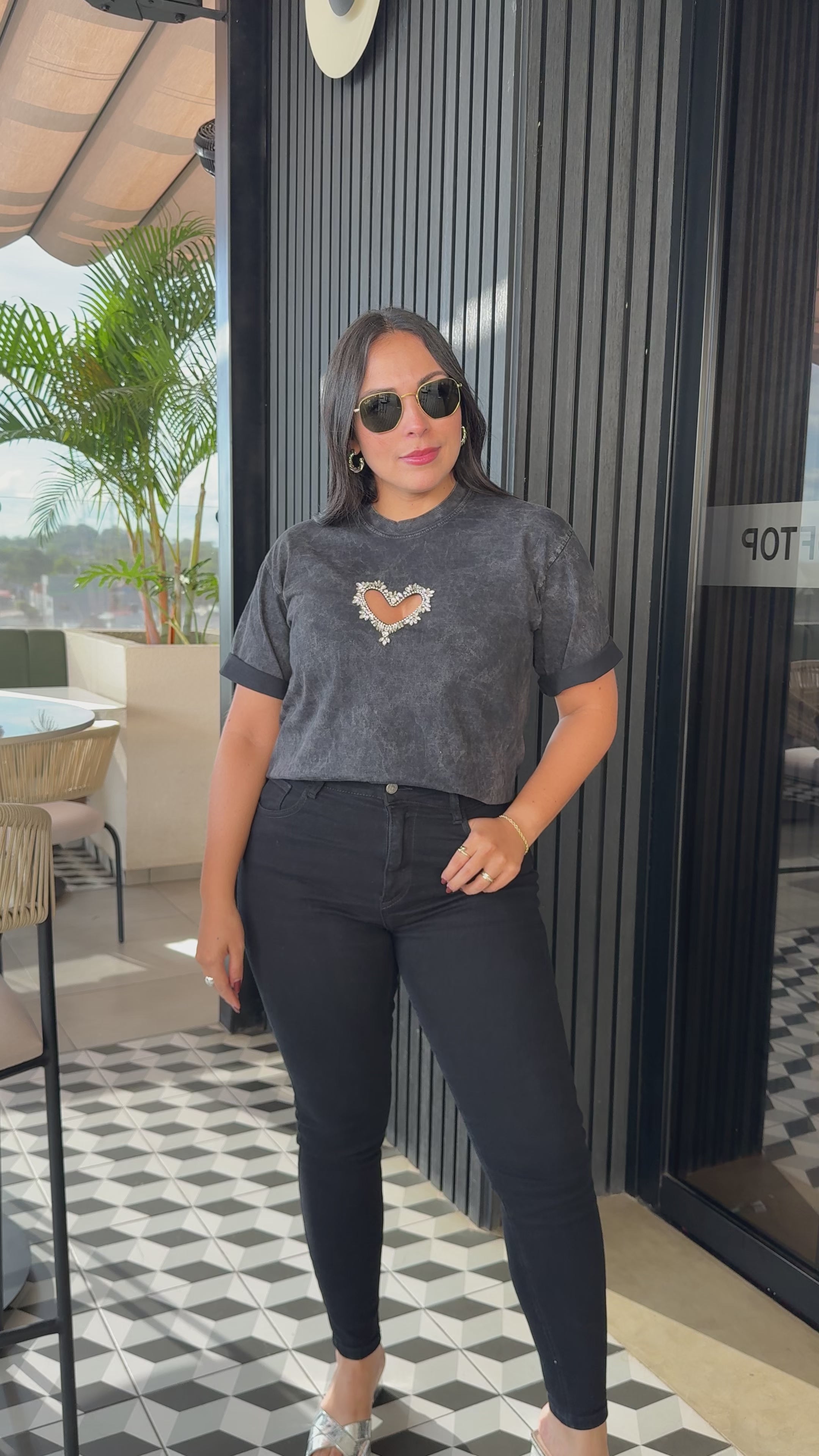 Una camiseta oversize que transforma lo casual en especial. Confeccionada en algodón 100% con efecto tie dye en tonos suaves, incorpora un corazón decorado con brillantes de murano que capturan la luz y realzan su autenticidad. Una prenda única para expresar tu estilo con frescura y un toque de elegancia artesanal.